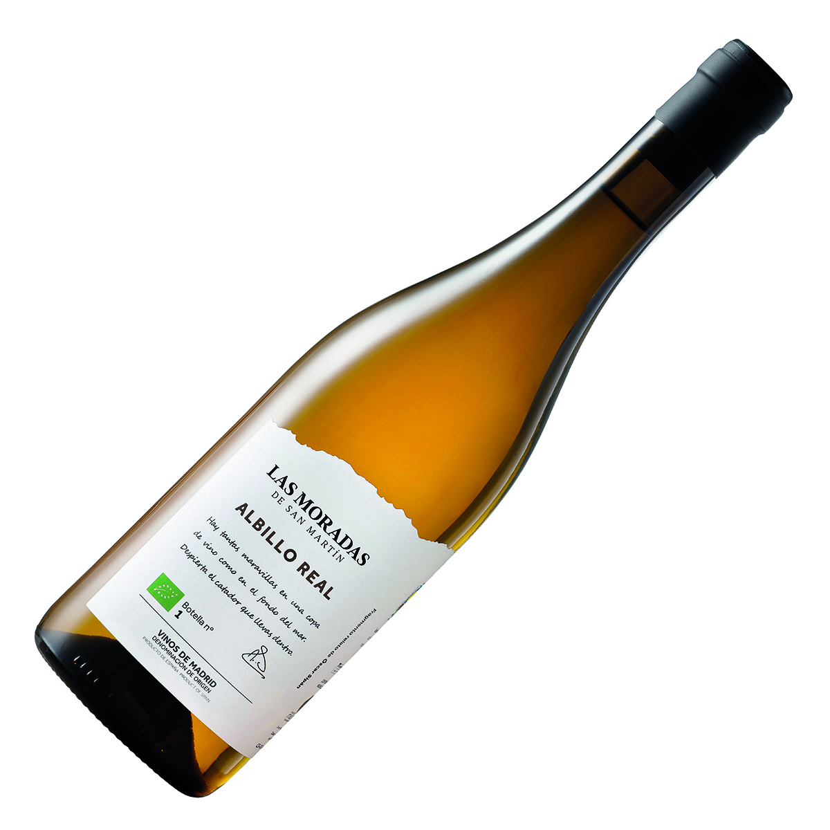 100% Albillo Real. Indigenous and historical grape from Madrid of great value because of its singularity. Mean vine age: 40–80 years. Minimal intervention. Manual, semi-nocturnal harvest, carried out plot by plot, in two passes. Clusters are whole-cluster pressed and transferred to tank where fermentation begins naturally with indigenous yeasts and bacteria. 30% of the wine is produced without sulphites, providing greater richness, complexity and creaminess. The wine is clarified naturally by means of winter cold settling and racking, without fining or filtration.Aged for 6 months in used French oak barrels of 500 litres, with bâtonnage each full moon.